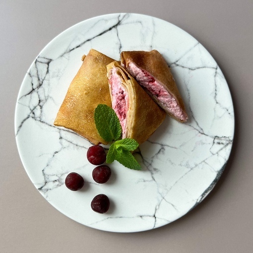 Состав: начинка – творог, вишня, сахар; тесто - вода питьевая, молоко, мука пшеничная в/с, яйцо куриное, сахар, масло подсолнечное, соль пищевая.