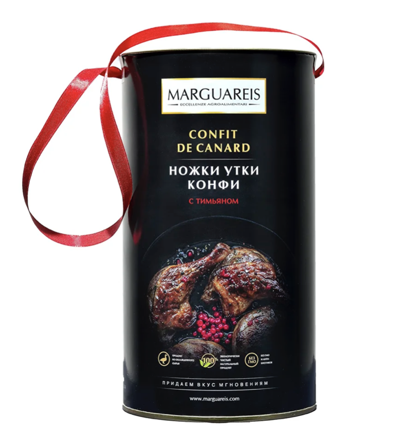 Состав: Утиные ножки, утиный жир, тимьян, соль, душистый перц, мускатный орех