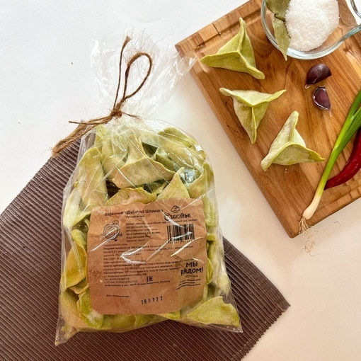 Состав: начинка – адыгейский сыр, голландский сыр, шпинат, жареный лук (репчатый лук и подсолнечное масло), масло подсолнечное, соль; тесто - мука пшеничная в/с, шпинат, вода питьевая, яйцо куриное, масло подсолнечное, соль.